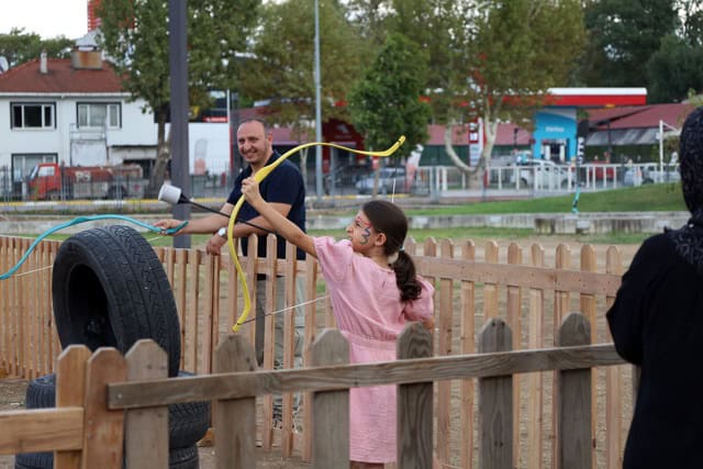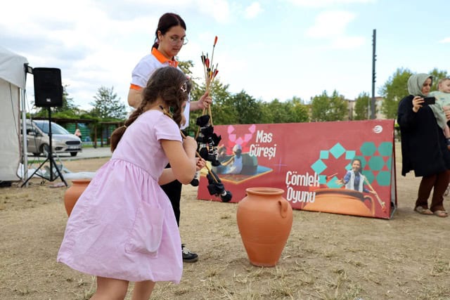 İlk gün programında çocuklar, uzman eğitmenler eşliğinde ok atmayı deneyimledi. Mas güreşi, çömlek oyunları ve geleneksel yarışmalarla keyifli anlar yaşayan minikler, yüz boyamalarıyla etkinliğe neşe kattı.